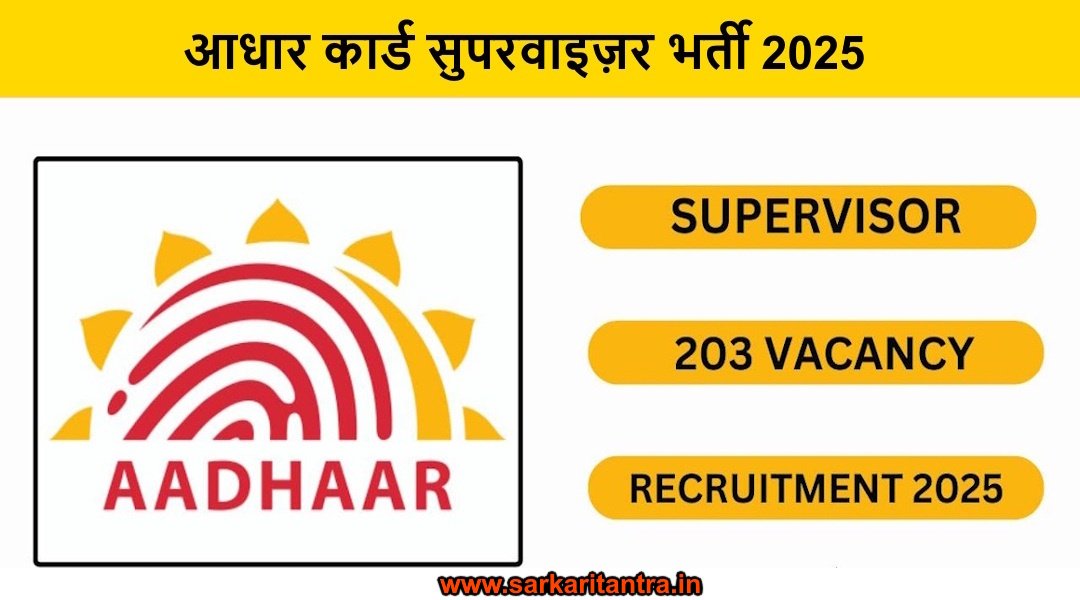 AADHAAR Supervisor Recruitment 2025 – Apply Online for 203 Posts