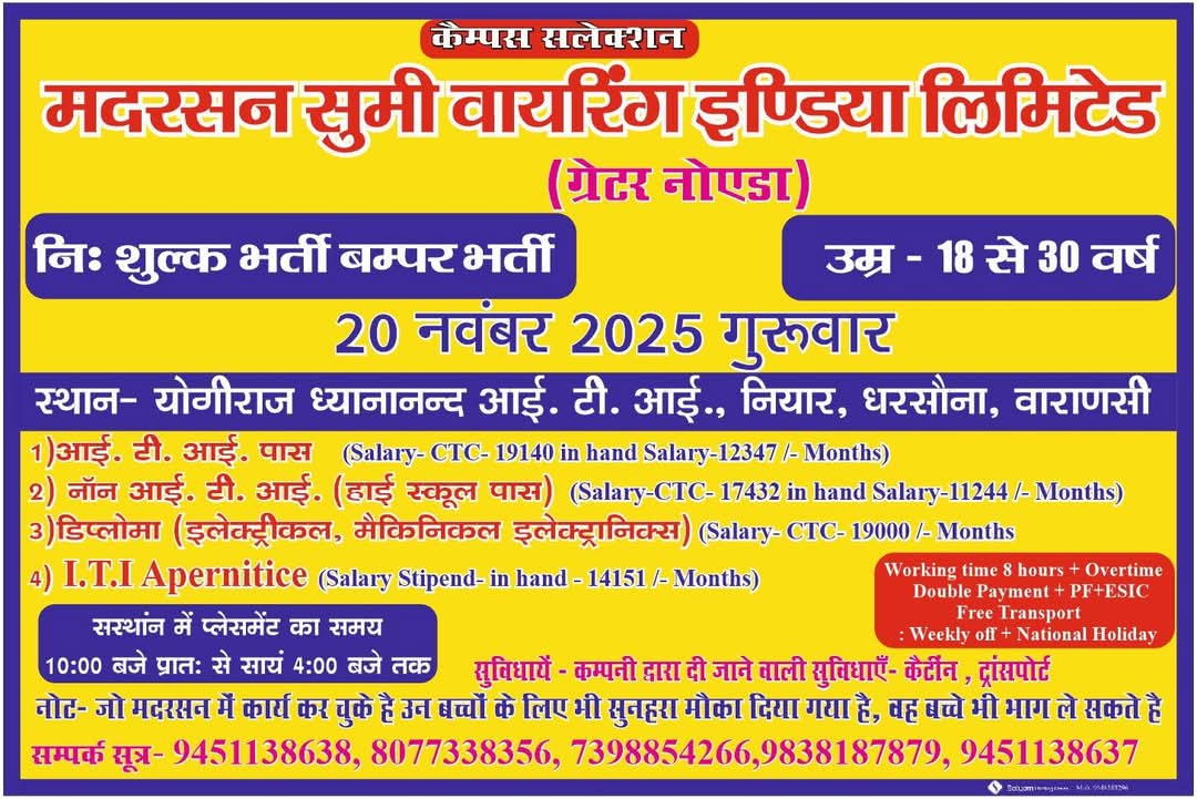 - Venue: योगीराज ध्यानानन्द आई. टी. आई., नियार, धरसौना, वाराणसी