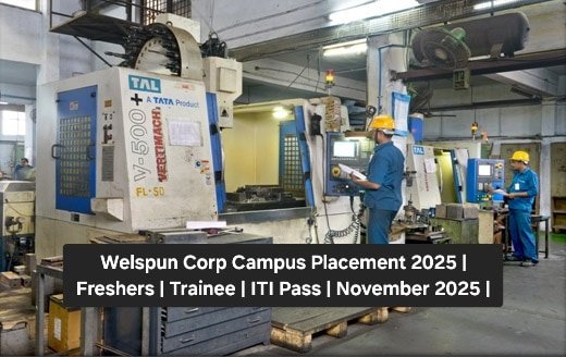 Welspun Corp Campus Placement 2025 | Freshers | Trainee | ITI Pass | November 2025 |